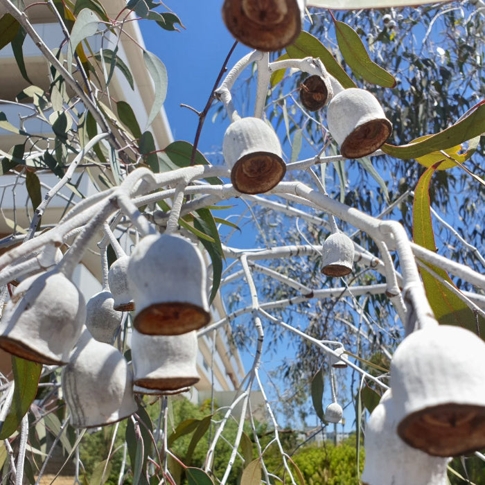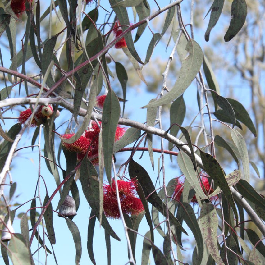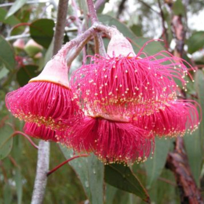 Renowned for its elegance, this ornamental tree boasts a graceful weeping habit and can reach an impressive height of up to 8 meters. Adorned with stunning large pink to red blossoms accented by vibrant yellow stamens, followed by large silver gum nuts. 'Silver Princess' puts on a spectacular floral display from Winter to Spring, attracting pollinators to your garden.