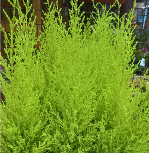 A delightful medium height conifer with a soft, natural cone shape and golden-green, lemon-scented foliage.