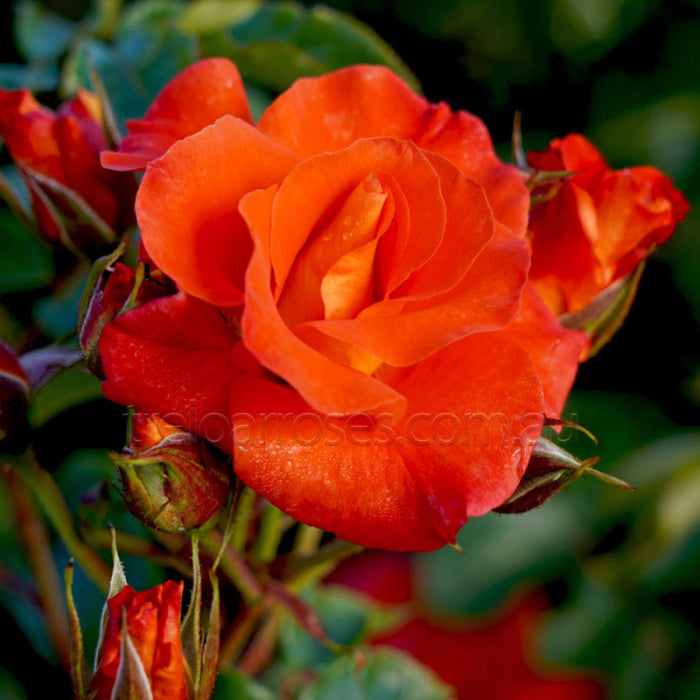 Rose ‘Afrikaans’ is a vivid, show-stopping floribunda rose, featuring strong orange blooms with a golden reverse that can be admired from a distance. The semi-open flowers are produced in abundance, and while lightly scented, their brilliant colour and bold presence are sure to impress any onlooker. The name Afrikaans means African in Dutch, perfectly reflecting its vibrant, sun-soaked tones.