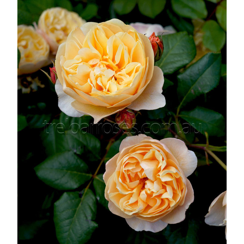 Soft orange-red buds open to medium sized cupped rosettes of perfect apricot colouring. Extremely robust with a lovely fruity Tea scent. Very healthy, it matures into an attractive, rounded, bushy shrub with few thorns. Perfect for any situation, can cope with partial shade. 1mH x 1mW