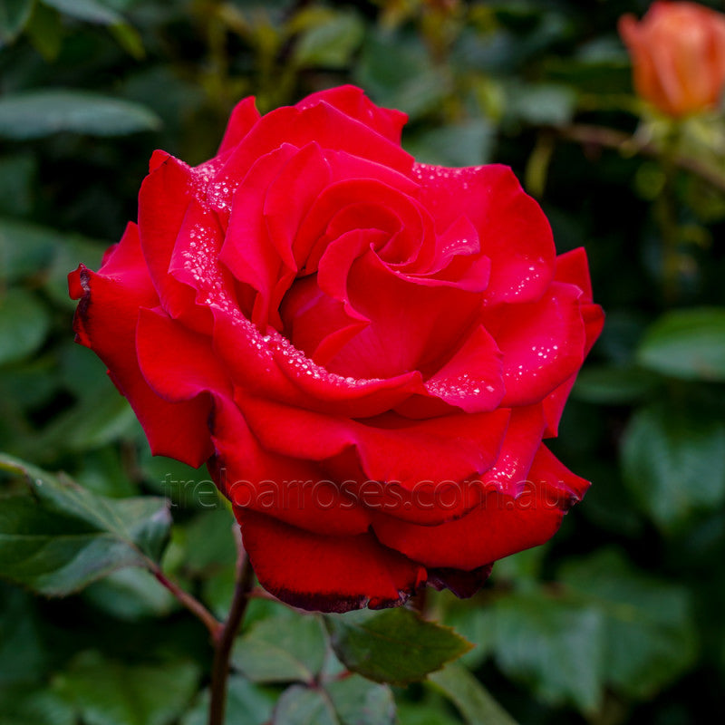 A beautiful red rose with well formed medium sized blooms produced on long, single stems. A wide, well branched bush with dark green glossy foliage. This is a rose  dedicated to love. Suitable for bouquets. Received ADR award.  1.5m tall.  Hybrid Tea rose.