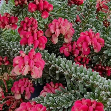 A low, compact, evergreen ground cover plant with stunning pink spider type flowers in winter and spring. It is naturally dense and fast growing, which helps to suppress weeds, making for easy care landscaping. Grows 30cm H x 1.5m W.