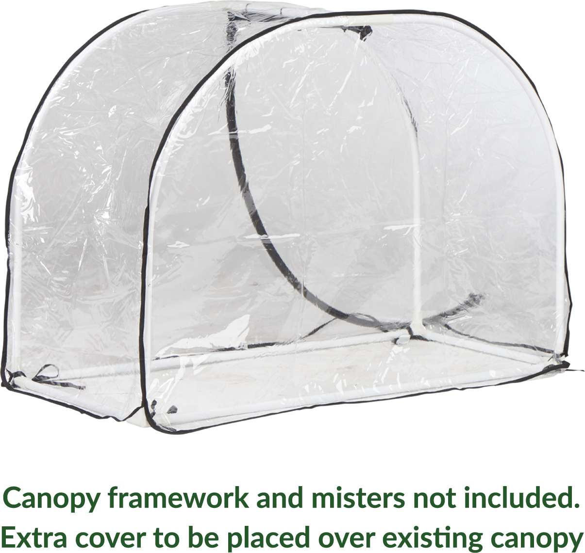 The covers  create a greenhouse/hothouse environment for your plants, allowing sunlight to come through and trapping the heat in, whilst keeping extreme cold and precipitation out. This not only protects plants from the sharp cold, winds, frosts and snow but also creates a micro-climate to enhance growth. For extreme cold or poor light environments, users are recommended to take off the existing canopy mesh before sheathing the clear PVC cover on. This rids the 17% shade supplied by the existing canopy. For climates where it is not so extreme, then users can simply sheath the covers straight over the top of the existing mesh. These winter covers are also used for protective early plant propagation (raising of seeds/seedlings), early season planting (e.g.: winter tomatoes) or season extenders (summer crops into autumn).